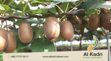 فاكهة بيضاوية قشرتها بنية واللب أخضر مع بذور سوداء صغيرة